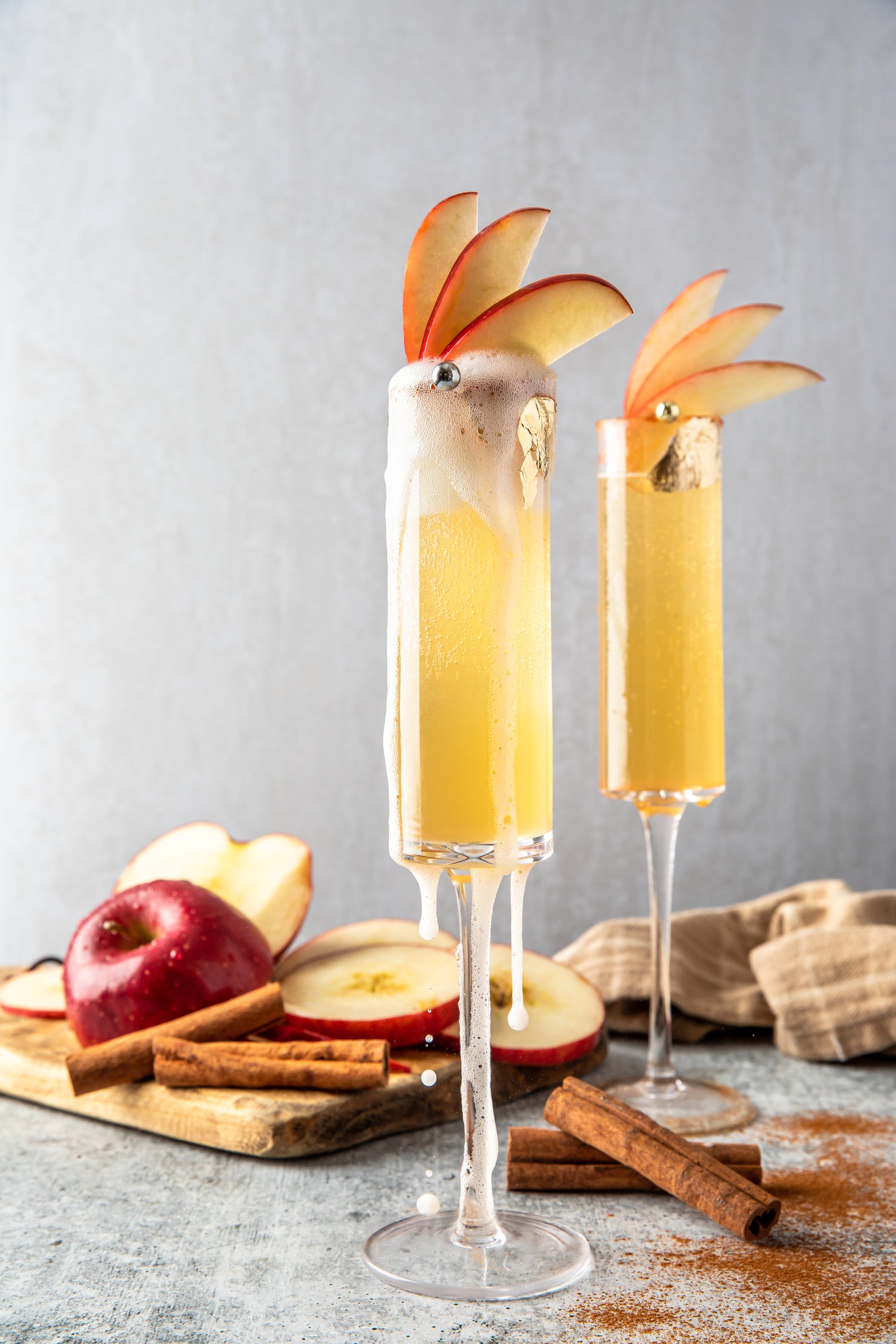 Garnish: Dried apple and gold flakes with a cinnamon rimmer